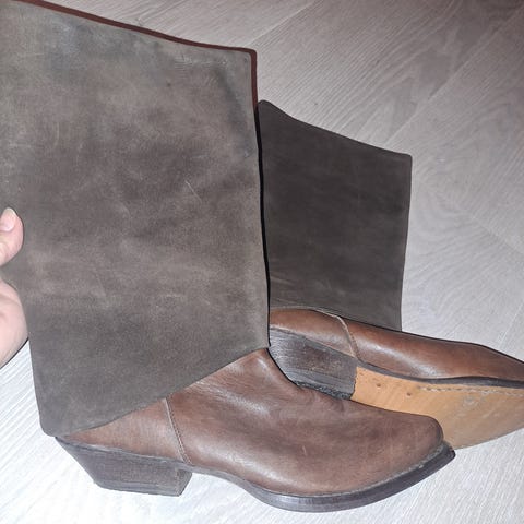 Beige boots, brukt en gang. Semsket skinn, str 37