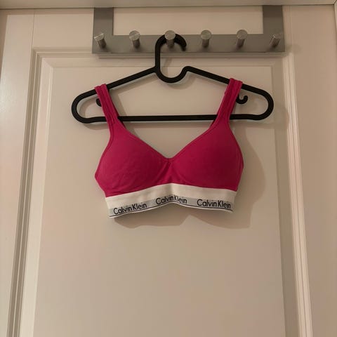 Calvin Klein BH i størrelse XS, grå farge. Laget av mykt materiale med elastiske stropper og justerbar lukking bak. Designet for kvinner.