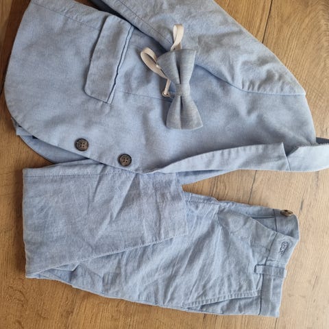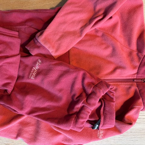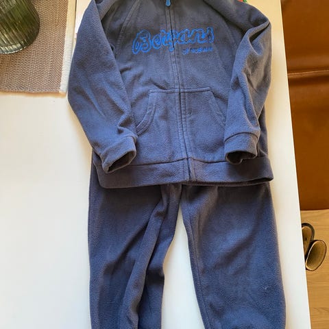 Bergans flees sett i blå farge, størrelse 98-104. Sett består av jakke med glidelås og bukse med elastisk midje. Materiale ikke spesifisert. Passer for både gutter og jenter.
