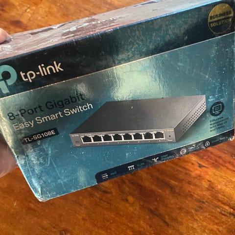 TP-Link TL-SG108 er en 8-ports nettverksswitch med svart utførelse. Den støtter kablet tilkobling for datanettverk og har en kompakt design. Strømforsyning medfølger.