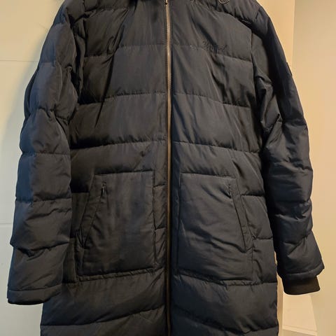 Mørk blå marine lett dunkåpe fra merket Normann. Pent brukt uten flekker eller rifter. Nypris ca kr 2.500. Selges for kr 500