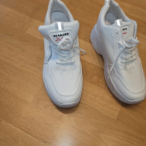 Myke og utrolig lette, hvite joggesko. Gode på!
