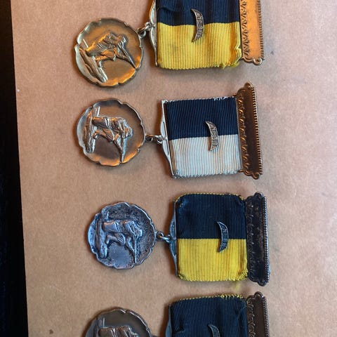 Førkrigs idrettsmerker , ski / skyting / idrett / marsjmerke / skytingens dag pin / milorg nål / knapper / båndstripe / flott gammel brosje nål med riksløve / 17 mai medalje / nsb tog luemerke? Hv merke/ riksløven nål little Norway? / hs nål / Ford nål / armbind