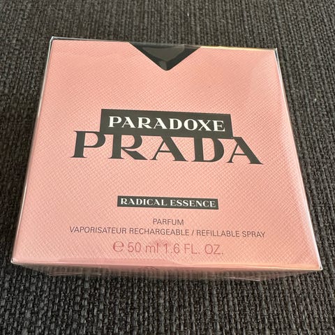 skråstilte Prada-trekanten, husets ikoniske signatur. Flakonen er lakkert i en intens og forførende fargegradering fra dypest svart til husets ikoniske grønne farge. Den ytre esken er preget for å gjenspeile merkets signatur Saffiano-skinn med krysskravering, signert med en sølvfarget Prada-logo.