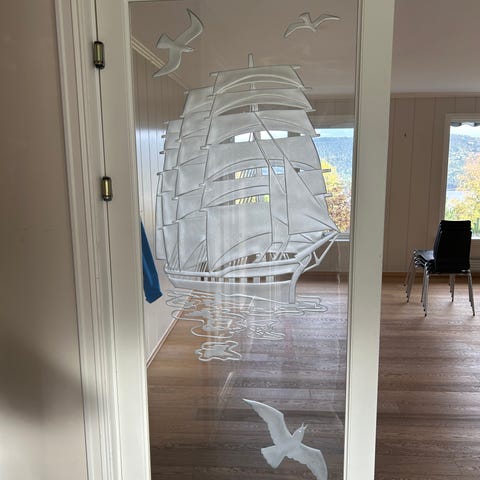 Teak dørblad med glass
