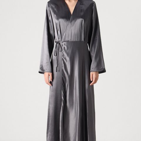 Deilig og pen omslagskjole i 55% lin, 45% viskose. Svært lite brukt (har en som er nesten helt lik..). Vil si det er en romslig small.
