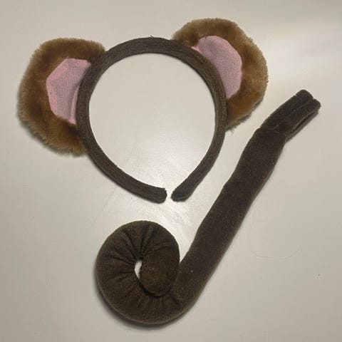 Selger en sjimpansemaske i brun latex med svart fuskepels.