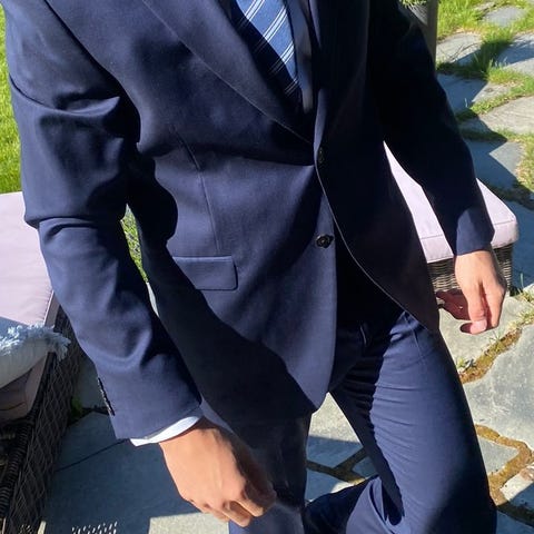 Selger en grå dressbukse som kun er brukt en eller to ganger. Den er i veldig god stand, uten flekker eller slitasje. Klassisk og elegant passform – passer perfekt til jobb eller formelle anledninger. Ta gjerne kontakt hvis du ønsker flere bilder.
