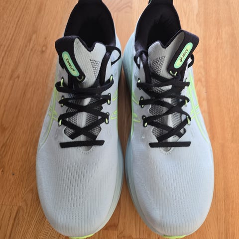 Svært lite brukt Asics Gel-Nimbus 27 i størrelse 43,5. Ikke brukt til løpetur, men gått med utendørs et par ganger. Selges fordi de ble for små.