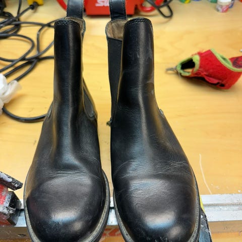 Horze brune ridesko i skinn med glidelås foran. Støvlene har en robust såle og en enkel design. Brukt kun på riding en gang i uka litt vår og høst. Selges fordi de har blitt for små