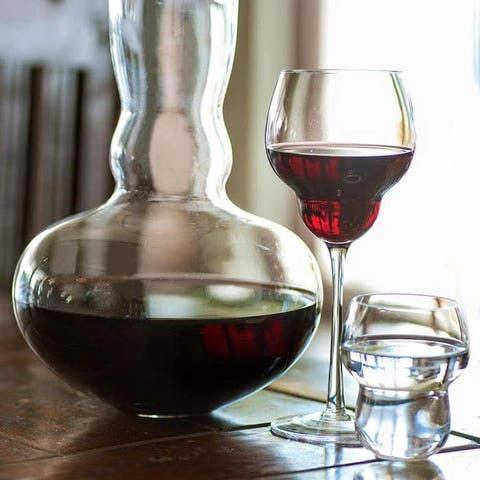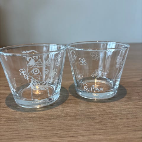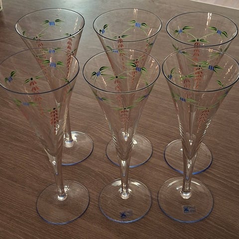 Det er egentlig gamle vinflasker, vinen var ikke noe god, men flaskene er kule. Brukt som vann karafler.
