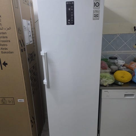 Samsung Kjøleskap i hvit farge. Standard størrelse kjøleskap med enkelt dørdesign. Egnet for kjøkkenbruk til oppbevaring av matvarer.
