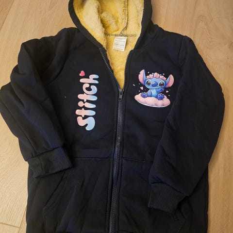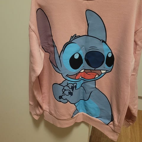 Primark Stitch genser i svart farge, størrelse 152 for jenter. Genseren har et trykk av Stitch på forsiden og bak, laget for barn i alderen 11-12 år.