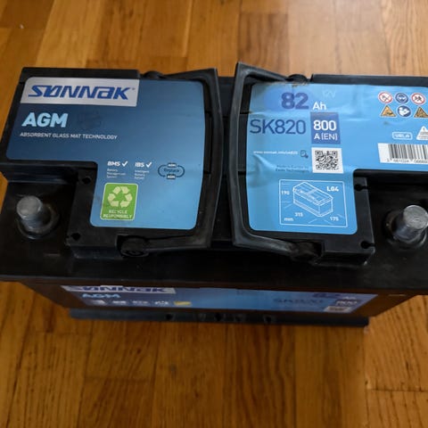 Startbatteriet ble kjøpt til traktor, men ble litt stort. Veldig lite brukt.