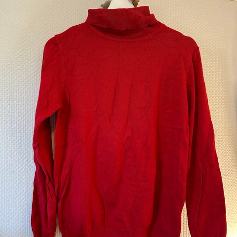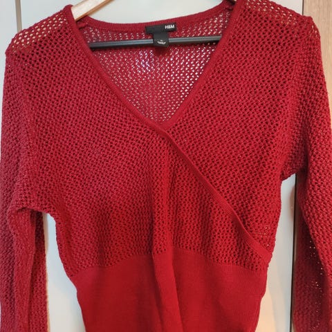 H&M Genser i rød farge, størrelse L for dame. Laget av ribbestrikket materiale med en asymmetrisk halsdesign. Passer til hverdagsbruk og kan kombineres med ulike antrekk.