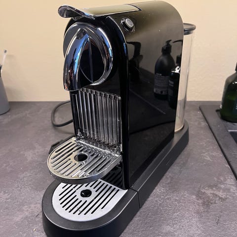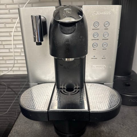 Nespresso Expert kapselkaffemaskin i svart farge. Maskinen har integrert melkeskummer, vannbeholder og enkel betjening med knapper for ulike kaffetyper. Egnet for bruk med Nespresso-kapsler.