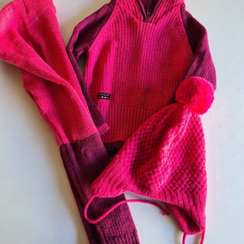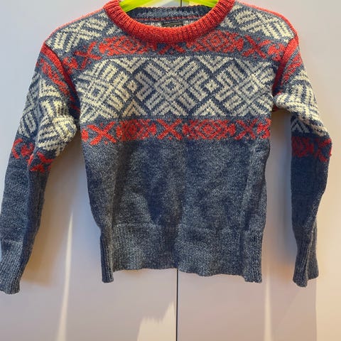 Ullsett fra vikafjell, genser str 3 og bukse str 2, ble brukt samtidig. Da buksen var stor i størrelsen