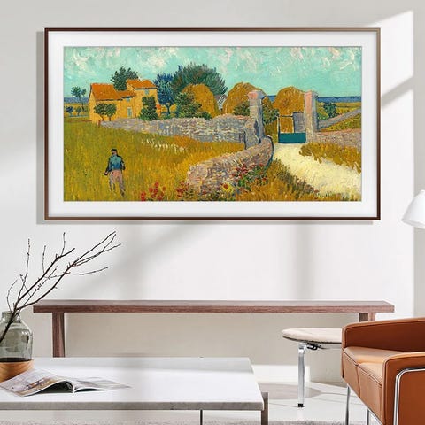En TV som kombinerer godt bilde med et stilrent design – den henger flatt på veggen og fungerer som et kunstverk når den ikke er i bruk.