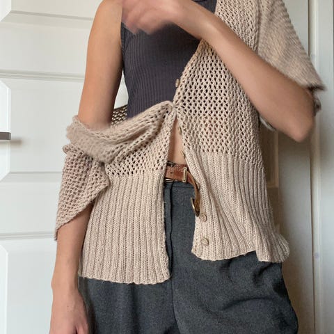 Prisen er pr stk. Str onesize på den beige ponchoen og den rosa cardigan. Flerfarget cardigan har str S/M, og er med ermer. Poncho og flerfarget cardigan, er merket Cream.