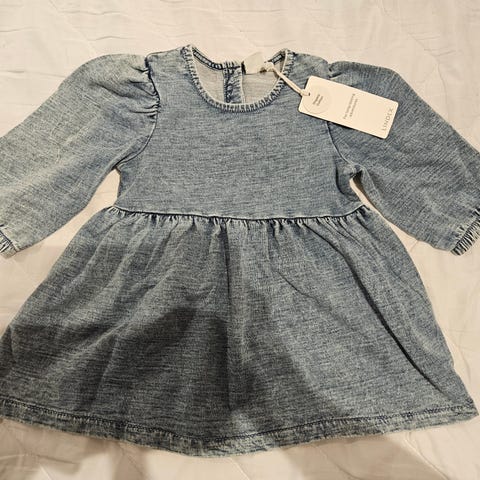 Lysegrå kjole i ullblanding, rosa bånd/sløyfe, str 74. Fra Benetton