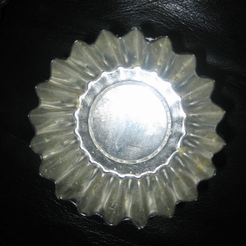 50 sandkakeformer i original blekk boks fra Aanonsen. Bakeoppskrift på baksiden.