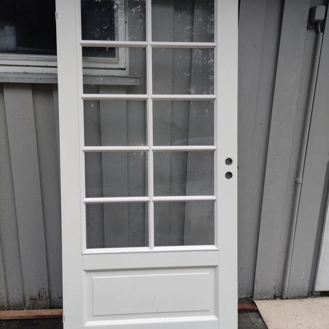 Innerdør i hvit utførelse med 10 glassfelt. Døren har et klassisk design med ruter som gir lysgjennomgang mellom rom. Egnet for innendørs bruk.
