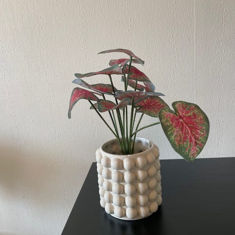 Hypoestes Polka Dot Plant er en innendørs plante med flerfargede blader, preget av rosa og grønne nyanser. Planten har små, ovale blader med flekkete mønster. Fin vekst🍃