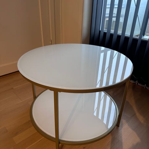 Pent brukt rundt bordet selges. Kjøpt på IKEA, Krogstad. ståd i en lite brukt kjellerstue. Noe slitasje på bordplaten er det.