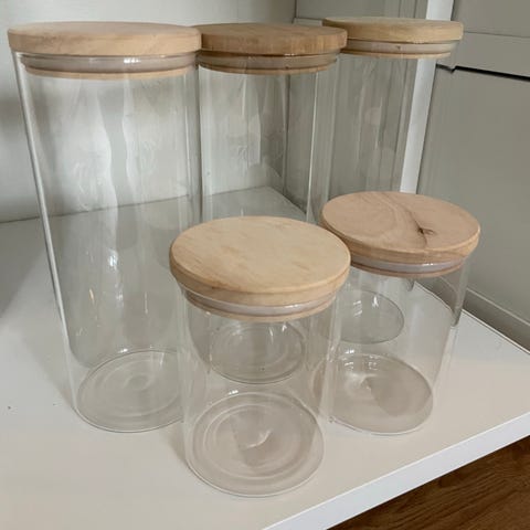 Kun brukt til pynt på kjøkkenbenken med pasta oppi.