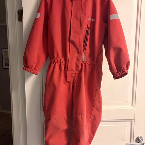 Reima barnedress (høst/vår) i størrelse 110, unisex. Dressen er rød og laget for barn. Den har elastiske mansjetter ved ermene og reflekser for økt synlighet. Passer til bruk i utendørsaktiviteter og lek.
