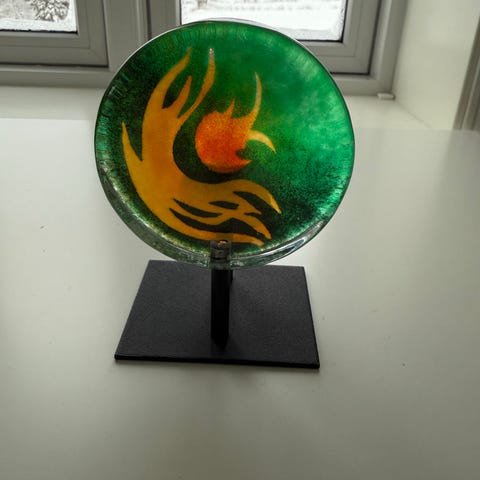 Gjenstanden på bildet er en bordskåner (trivet) fra Berggren, med et design av en hane i svensk folkekunststil. Slike bordskånere, ofte laget med en keramisk flis montert på en tre- eller støpejernsplate, ble populære på 1960- og 1970-tallet.
