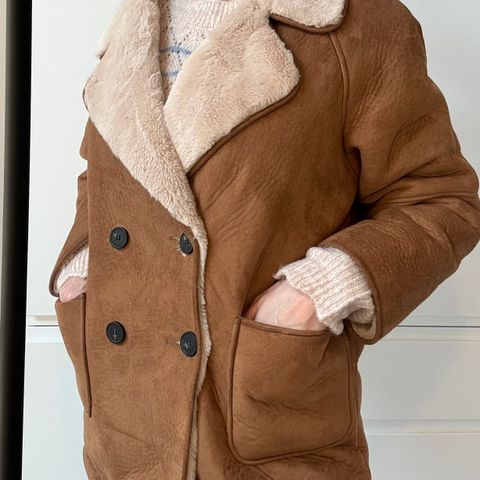 Selger en kjempefin og ubeskrivelig(nesten) behagelig vinterjakke som jeg ikke har brukt enda, har for mange. Jakke ble kjøpt i utlandet for 2 år siden. Varmer godt og føles veldig riktig. Totallengde fra skuldre og ned ca 1 m. For meg er jakke ca 8 cm under kne og min høyde er 163 cm. Jakke er romslig og passer sikkert til str. M og liten L i tillegg, ikke bare til S som er på lappen.
