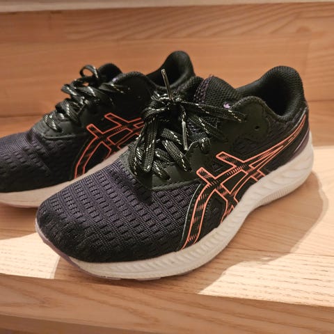 Asics joggesko, grå, blå og rosa, str 33. Brukt i noen gymtimer før de plutselig ble for små. Må hentes sentralt i Haugesund- jeg sender ikke.