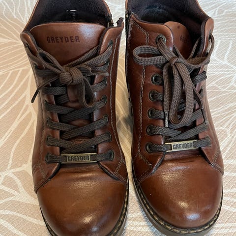 Veldig pene sko i nydelig brunt skinn fra Greyder. Fremstår som ubrukte. Størrelse 37. Kan hentes i Oslo eller sendes. Kjøper betaler porto.