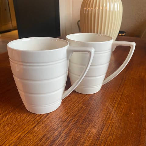 Espressokopper/små kaffekopper fra Jason Conran at Wedgwood. Strata underskål. 3 stk, selges for kr 200 per kuvert eller 500 kr samlet. Ikke synlig brukt.