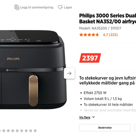 Ny uåpnet dobbel airfryer vurderes selges.