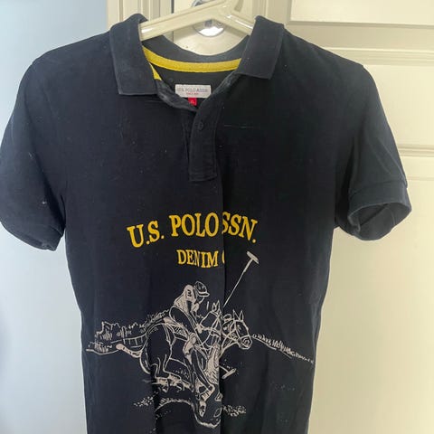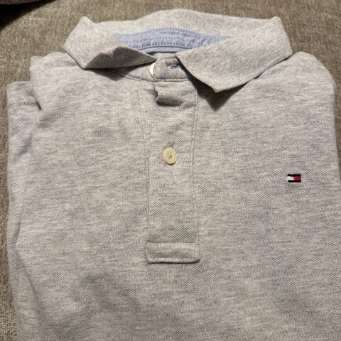 størrelse 152, designet for gutter. Litt usikker på størrelsen men tror 152. T-skjorten har kortermet design med krage og knappestolpe foran. Materialet er ikke spesifisert, men typisk for denne typen plagg er bomull eller bomullsblanding. Passer til hverdagsbruk og ulike anledninger.