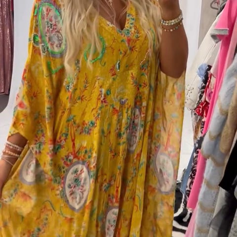 Kjempefin kaftan fra Love Forever. (Kan brukes som kjole på de som er lave. )Ny pris 699,- i 100% vintage silk.