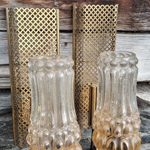Bordlampe med stoffskjerm og dekorativ metallbase