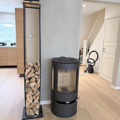 Selger bøtte - kurv til oppbevaring av ved produsert av Vølund Hamar.