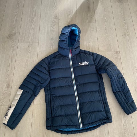 Swix dunnjakke. Jeg er usikker ang.størrelsen, men antar 7/8 år.
