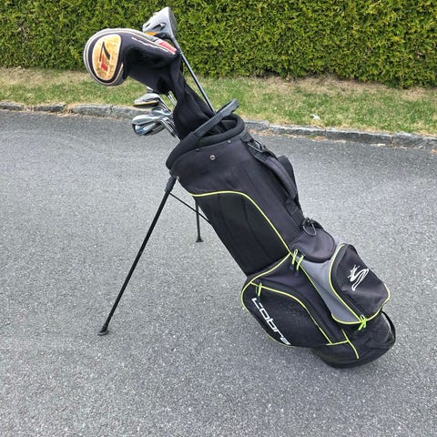 Cobra Golfbag Standbag i oransje farge. Baggen er utstyrt med stativ for enkel oppstilling og bæring. Den har flere lommer for oppbevaring av golfutstyr og tilbehør. Designet for å være lett og praktisk under golfspill.