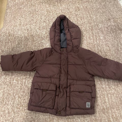 Zara flerfarget barnejakke i størrelse 92 for gutt. Jakken har hette og en fargekombinasjon som inkluderer brun, hvit og svart. Passer til barn i denne størrelsen og egnet for utendørs bruk. Vinterjakke
