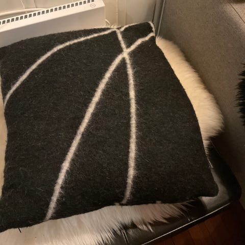 Pute laget på Røros -Tweed. Ullpute i str 45 × 45.Nb sender med nordpost. Pute selges for 300 pga litt ull borte.