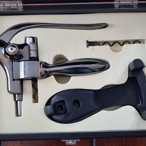 Ubrukt vinåpner / flaskeåpner sett på stativ i gaveeske.