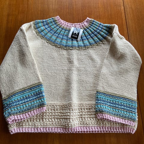 Meget pen hjemmestrikket genser i bomull- nesten ikke brukt