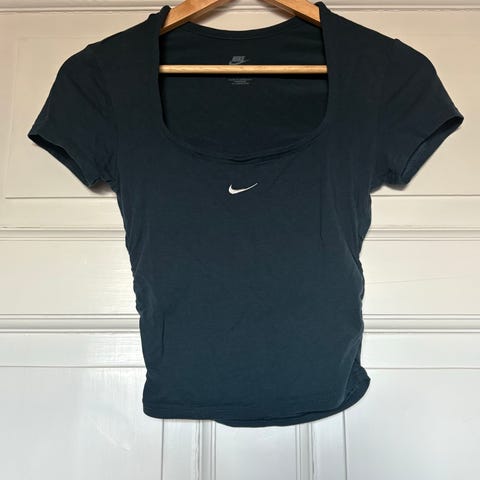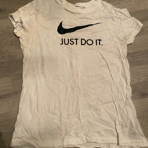 T-skjorte fra Nike str L selges. Har en løs tråd på magen (se bilde), men dette har ikke hatt noe å si for bruk, men derav lav pris.