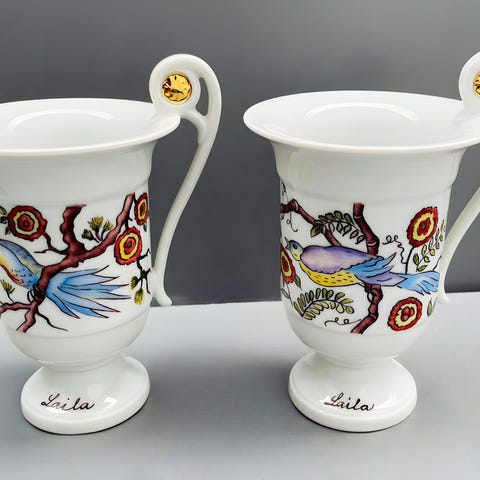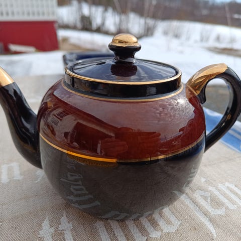 Indian Tree kanne laget av porselen med tradisjonelt blått mønster. Kannen har et dekorativt lokk med fugldetalj og håndmalt design. Egnet for servering av varme drikker.