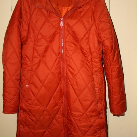 • Design: Lang modell med knytebelte i midjen for en fin silhuett, og praktisk hette. Stoffet ser ut til å være lett og passer perfekt som overgangsjakke eller lett regnkåpe.