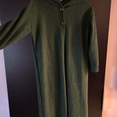 Fin ull kjole i flott grønn farge, kan brukes med eller uten bukse under. Fin til strømper og støvler . Ubrukt str S. Mykeste ullen kommer fra CTMH. Nypris ca 2700